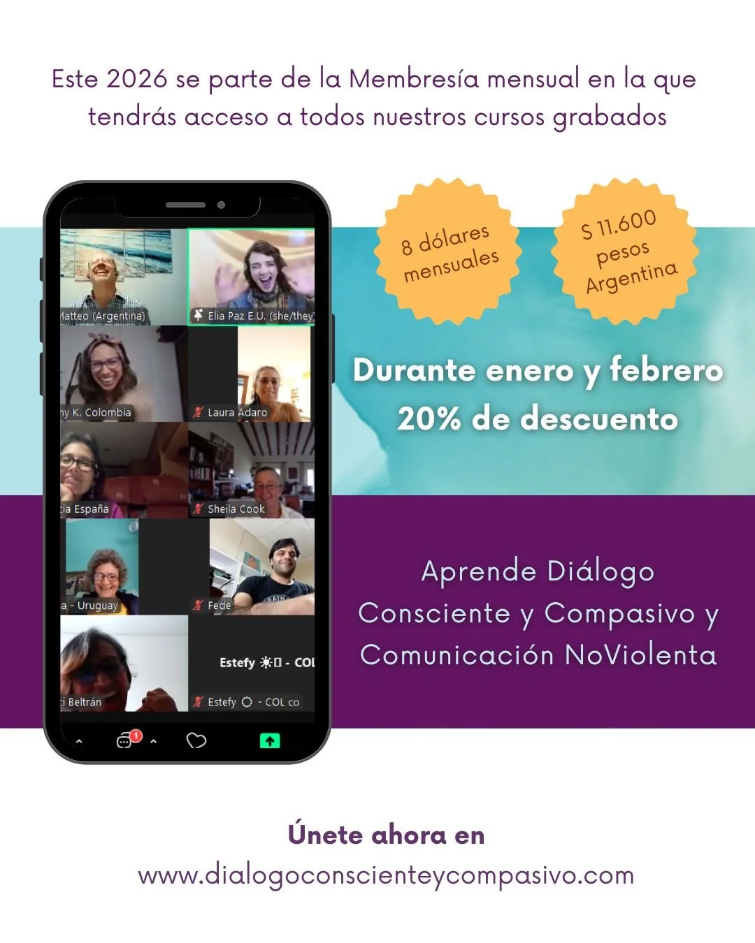 ¿Quieres iniciarte o profundizar en la practica del Diálogo Consciente y Compasivo y la Comunicación NoViolenta? Enero y febrero con 20% de descuento en acceso ilimitado a todos los cursos.